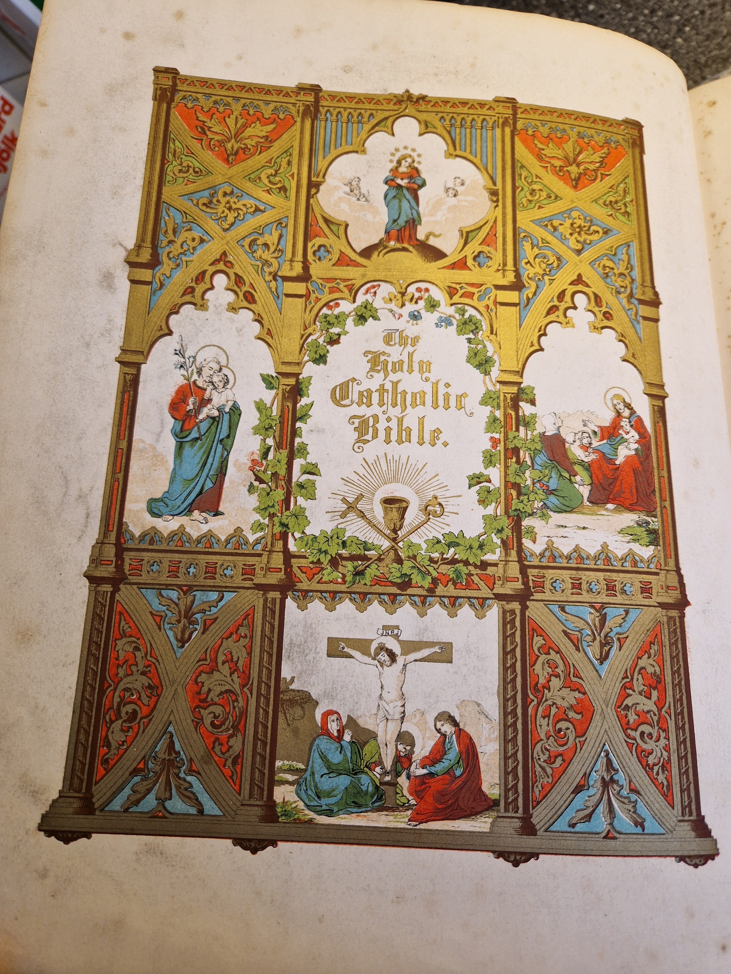 I got the Bible today! It's in need of some restauration but I've already planned for it. It's a Douay-Rheims/Haydock from 1850!